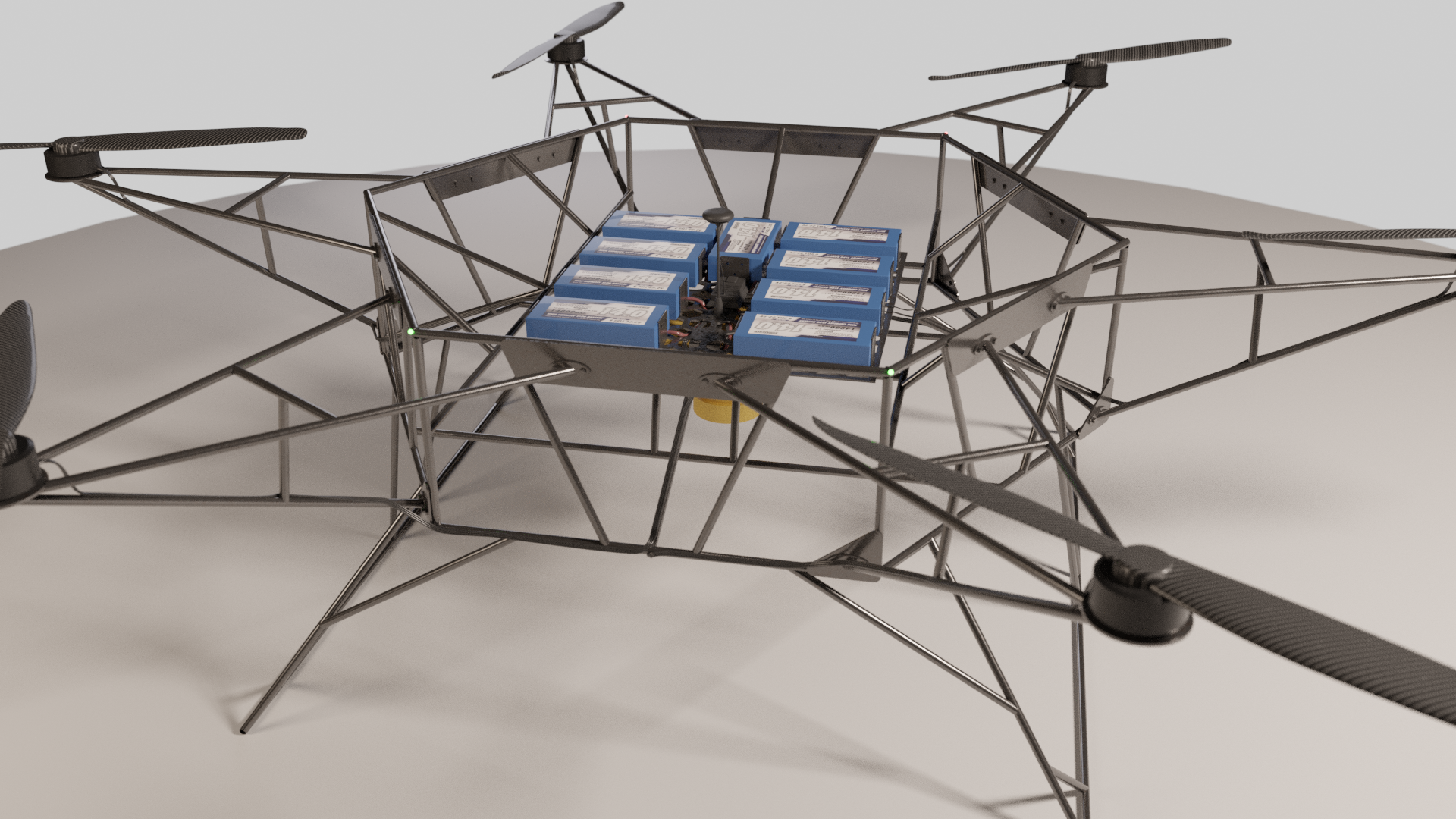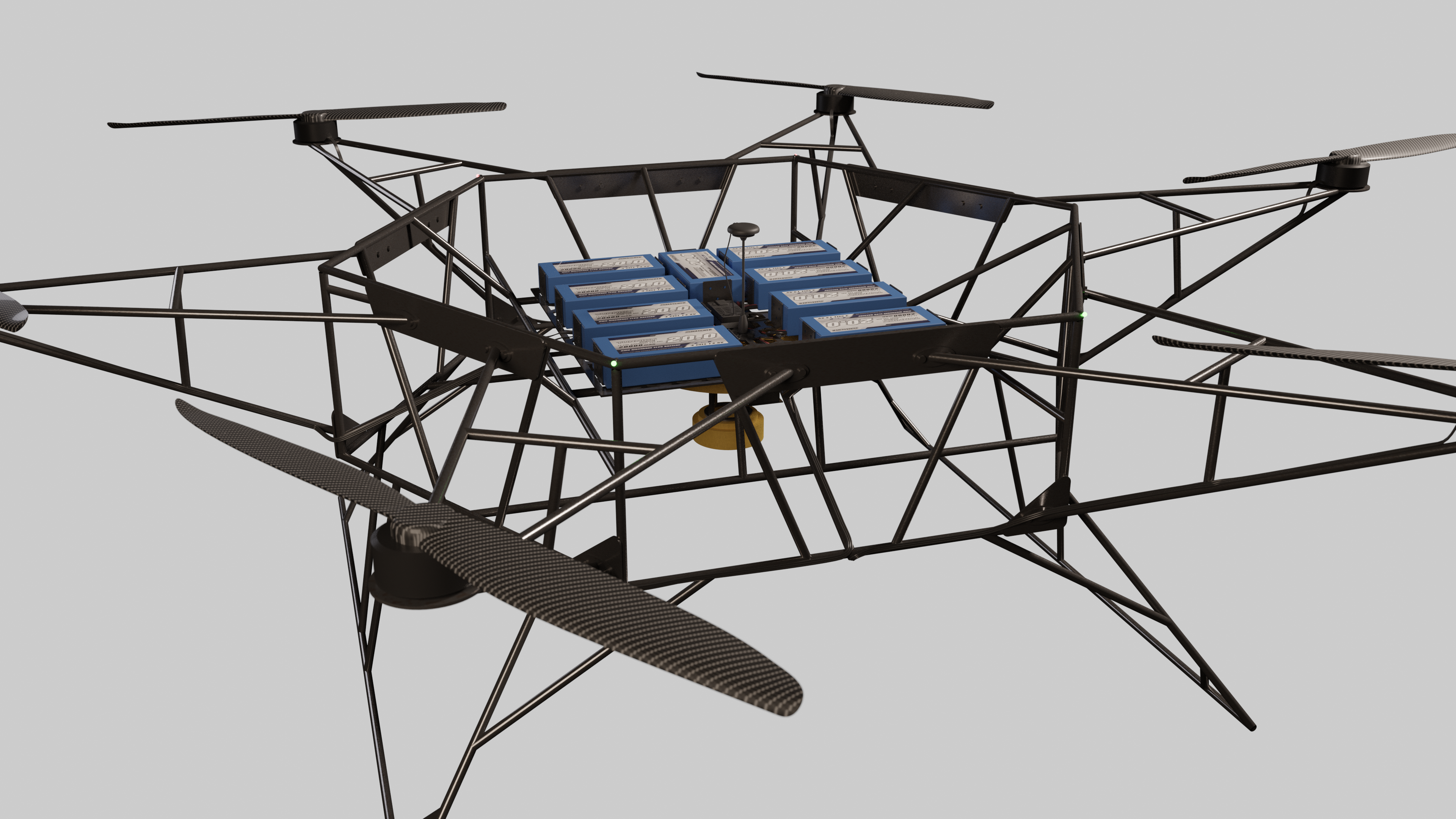 - Hexa-copter configuration, Lithium Polymer batteries